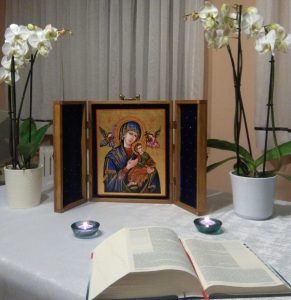 26 maja 2019r. rozpoczęła się peregrynacja Obrazu Naszej Patronki, Najświętszej Maryi Panny Nieustającej Pomocy, po domach naszych Parafian. Przypadający wtedy Dzień Matki nie był przypadkowym zbiegiem okoliczności, ale świadomym wyborem inicjatorów tego przedsięwzięcia. Patronka naszej Wspólnoty Parafialnej i naszej Świątyni nazywana jest przez wielu po prostu „Naszą Matką”. Trudno sobie zatem wyobrazić lepszy prezent dla Matki, z okazji Jej święta, niż ten w postaci zaproszenia do rodzin Jej dzieci. Podczas peregrynacji Obraz Matki Bożej gości w rodzinie przez 9 dni. W tym czasie domownicy mają okazję odprawić Nowennę, składając w dłonie Maryi wszystkie sprawy- zarówno prośby jak i dziękczynienia. Pobyt Maryi w poszczególnych domach jest okazją do zaproszenia bliższej i dalszej rodziny, znajomych i sąsiadów do wspólnej modlitwy. Parafianie, którzy pragną gościć w swoich domach tak niezwykłego Gościa mogą zgłosić się do zakrystii i zapisać na konkretny termin. Obraz Matki Bożej każdorazowo przekazywany jest podczas Mszy św. o godz. 18:00.