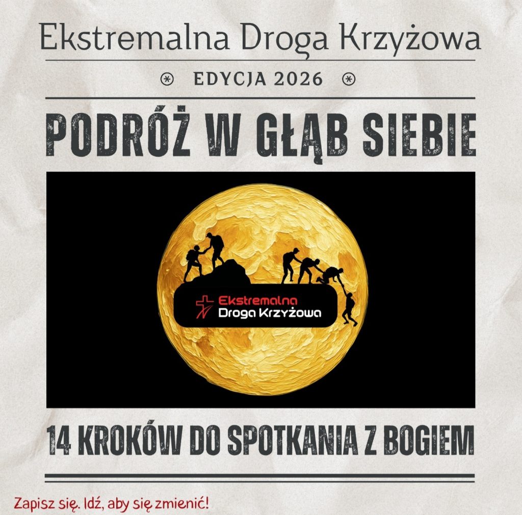 Ekstremalna Droga Krzyżowa 20 marca 2026r. z naszego Kościoła wyrusza Ekstremalna Droga Krzyżowa. W tym roku idziemy do Sanktuarium Podwyższenia Krzyża Świętego z Kaplicą Świętych Schodów w Sośnicy. Zapisy i wszystkie informacje na stronie internetowej: EDK